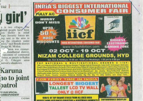 - Daily ads in all the national and local leading publications in the city at the prominent pages. Media coverage with professional write ups with eye catching visuals also planned.